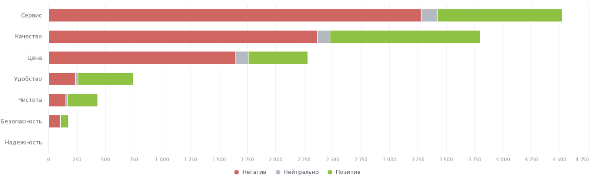 Как работает определение аспектной тональности, рассмотрим на примере отечественных сервисов такси. С помощью «Аспектов» мы проанализировали сообщения обо всех крупных игроках в этой нише на российском рынке, и выяснили, как клиенты воспринимают категорию в целом.