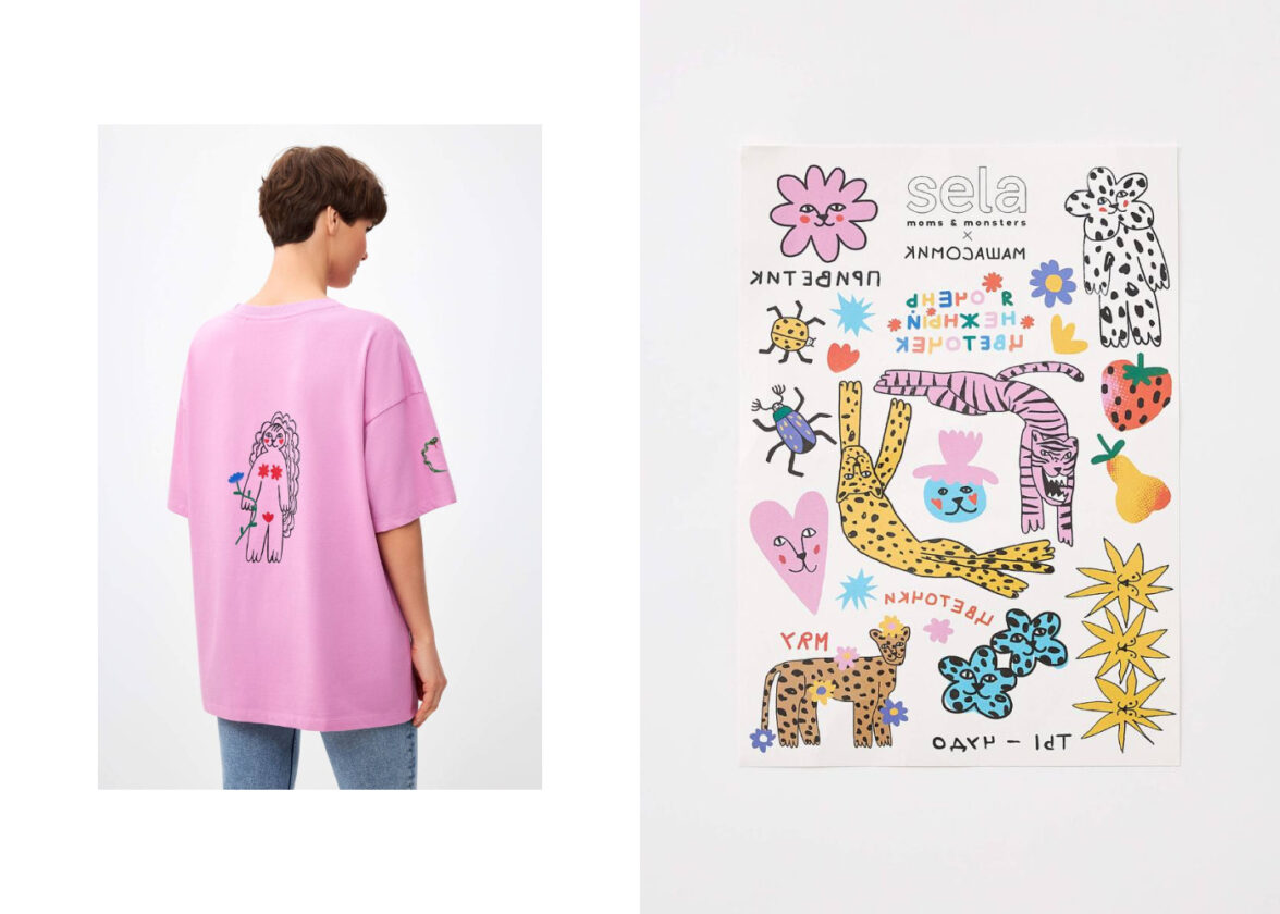 Кредо художника идеально совпадает с позиционированием бренда одежды Sela — moms & monsters, то есть одежда для мам и детей, которая наполнена любовью, радостью и красотой.