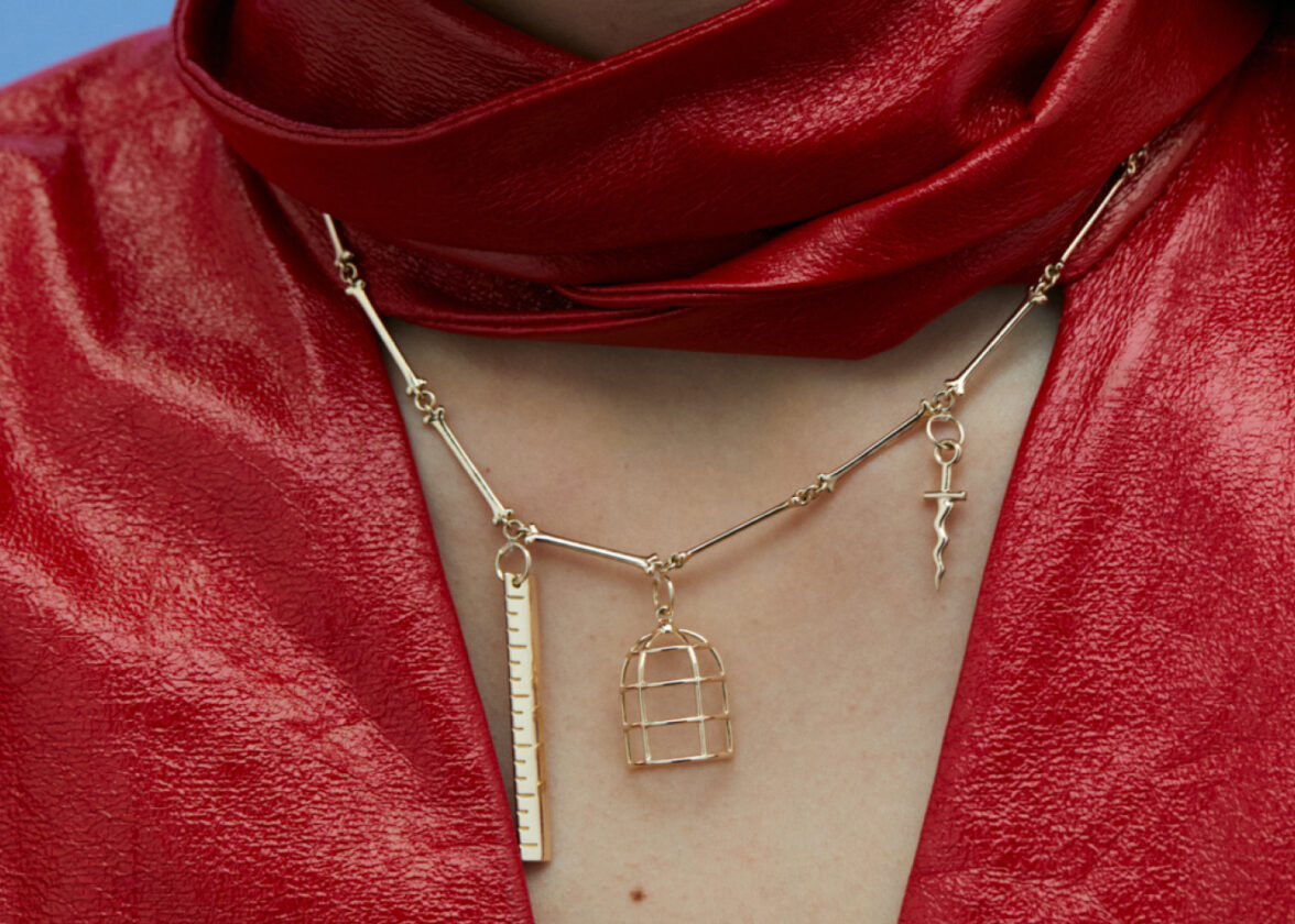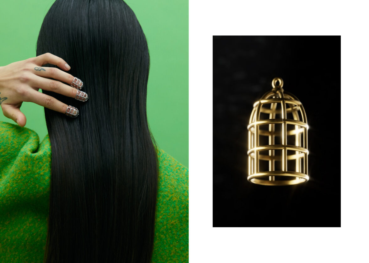 А вот пример, когда искусство подминает под себя все остальное. Коллаборация художника Протея Темена и ювелирного бренда Avgvst. Они нашли друг друга: тотальный абстракционист Протей и харизматичные ювелирные украшения. Процитируем анонс коллекции: «ДАР — это одиннадцать экспонатов из фантасмагорической палаты мер и весов, которые только играют роль украшений. Как измерить себя собой и что случится, если не удержать птицу в клетке?».