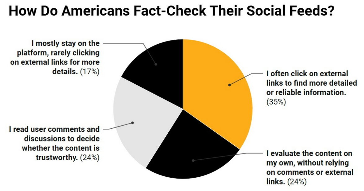 35% респондентов вне зависимости от возраста нажимают на внешние ссылки, чтобы проверить информацию, а 17% — никогда не покидают платформу.