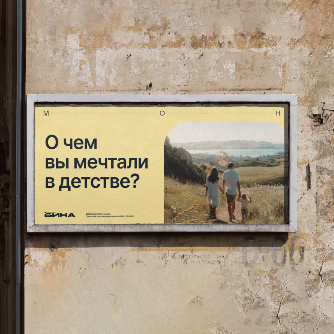 Исследовав аудиторию, мы увидели, что жители любят город, но это чувство ностальгическое, почти щемящее, и контрастирует с «мечтами о большем». «БИНА Девелопмент» действительно предлагает то самое «большее», за которым не нужно уезжать. Оставалось донести это через брендинг и метафору.