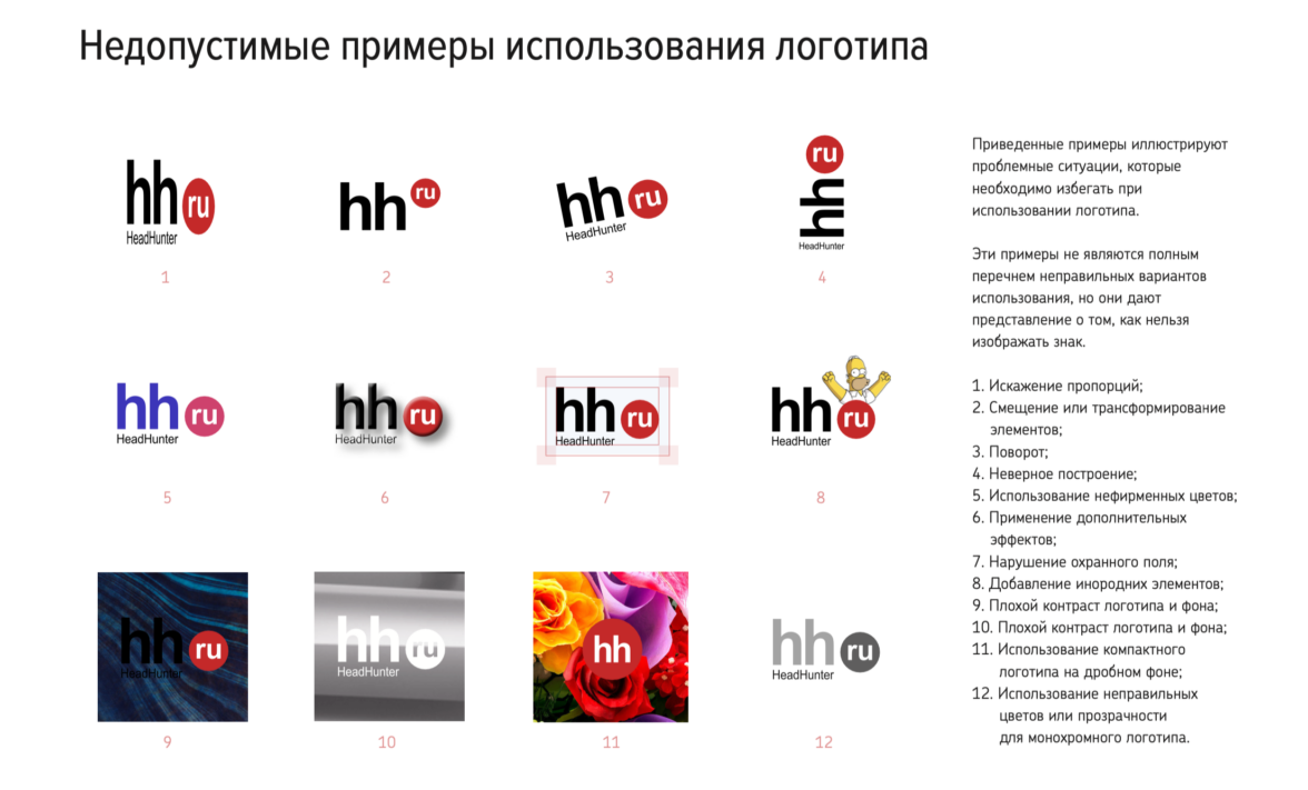 Подробно разобраны правила использования логотипа компании: как делать можно, а как недопустимо.
