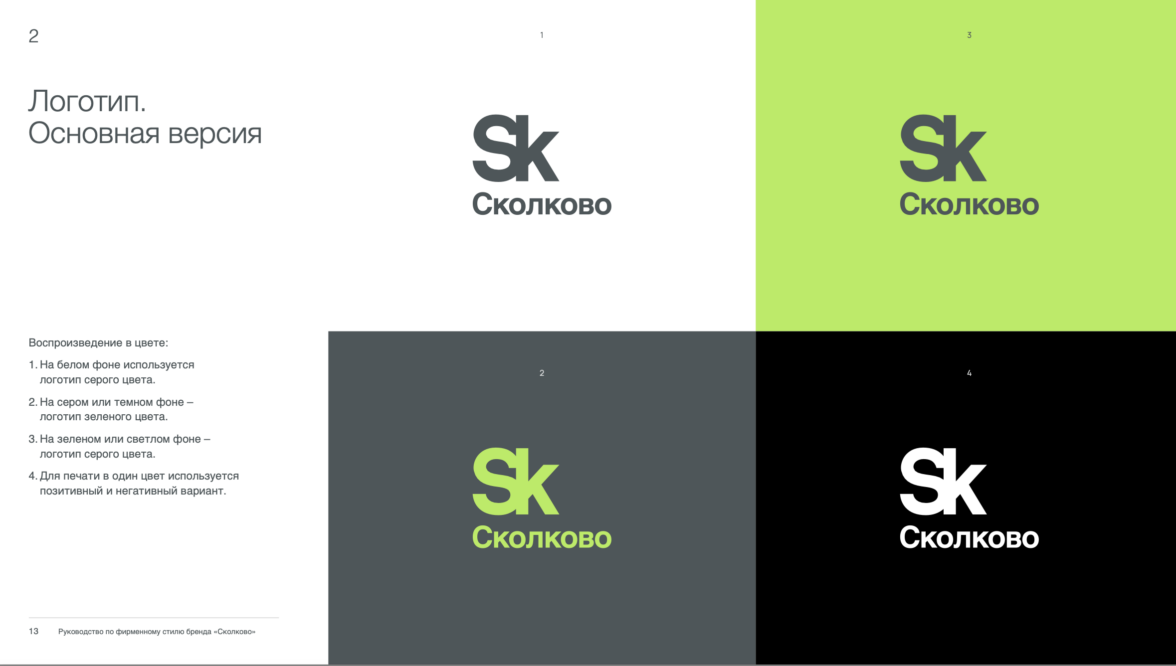 3. Сделать и обозначить элементы фирменного стиля: логотип, цвета, шрифты, другие элементы. Здесь к работе подключается дизайнер, который получает техническое задание (опирается на идентичность бренда). На этом этапе разработка брендбука достаточно кропотливая, потому что важно указать все детали, — определить варианты лого: цвета, охранное поле (фиксированное расстояние от других объектов), минимальные размеры.