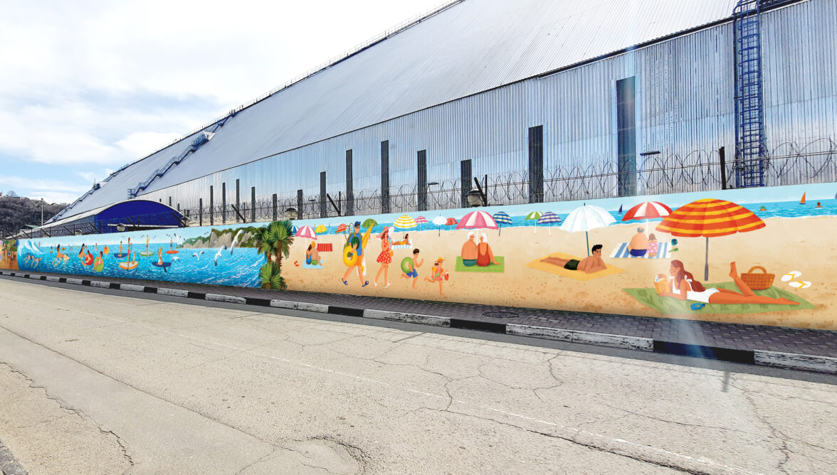 За ограждением, мимо которого каждый день прогуливаются местные жители и идут к морю отдыхающие, скрыто важное промышленное предприятие черноморского города — Туапсинский балкерный терминал. И забор вокруг него теперь стал 320-метровым «холстом», воплотившим в себе все, чем живет курорт.