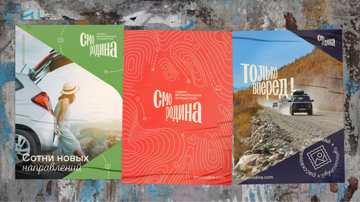 Несмотря на то, что заказчик пришел к нам с готовым названием «Смородина», нам удалось посмотреть на него под другим углом и переосмыслить как фразу «Смотри Родину». Когда мы отправляемся в путешествие на машине, мы смотрим на дорогу и видим открывающиеся перед нами виды. Пользователям «Смородины» точно так же открываются возможности: и путешественникам, и бизнесменам, работающим в сфере туризма. Мы хотели подчеркнуть эту перспективу в айдентике. Представили ее и в копирайтах, и в графике, и в фотостиле, и в логотипе.