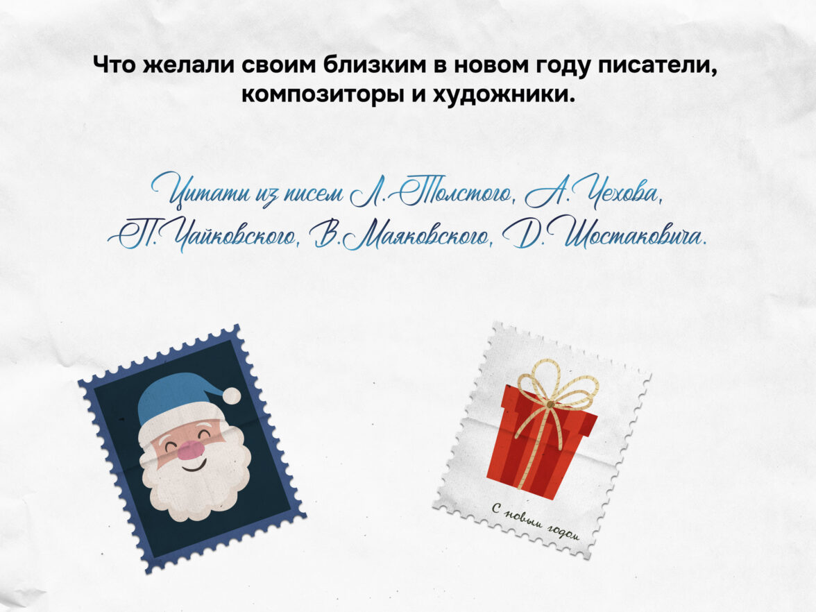 «Новый год — время делиться теплом и искренностью. Этот проект — о силе слов, которые остаются актуальными через века. Надеемся, что письма классиков вдохновят взглянуть на традицию поздравлений по-новому и подарят идеи для необычных и душевных новогодних пожеланий самым близким».