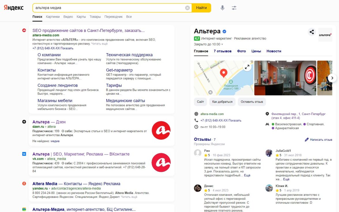Публикуйтесь не только у себя на сайте и в соцсетях. Проследите, чтобы компания присутствовала в картах, справочниках, отзовиках.