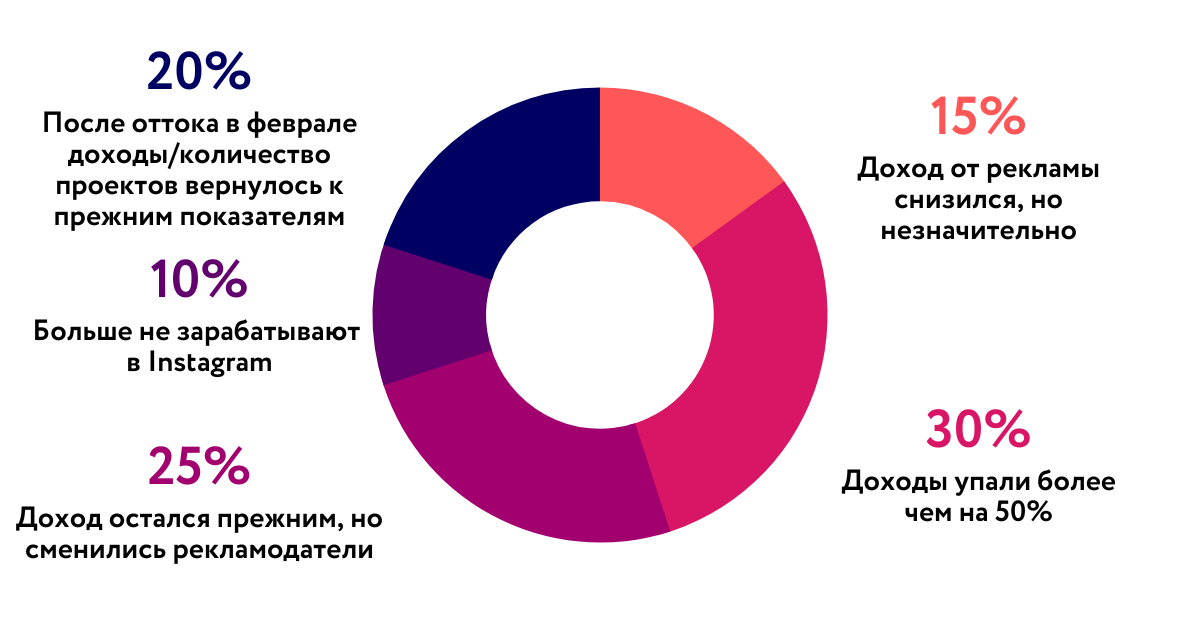 Бренды сместили фокус с крупных блогеров на микроинфлюенсеров с аудиторией до 50 тыс. подписчиков. При этом почти у половины блогеров доход от рекламных кампаний в той или иной мере снизился, а каждый десятый больше не зарабатывает в Instagram* и ищет новые способы заработка.