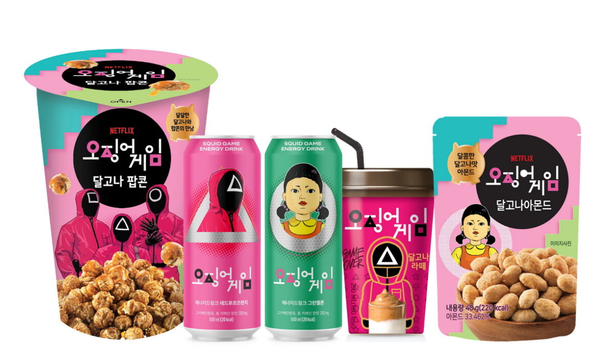 Розничная сеть товаров для красоты и здоровья Olive Young представила коллекцию косметики и средств ухода за кожей. Популярный бренд продуктов питания CJ CheilJedang bibigo поставит в магазины Южной Кореи, а также США, Великобритании, Франции, Нидерландов, Австралии, Японии, Вьетнама, Таиланда, Сингапура, Филиппин, Швеции и Тайваня различные национальные продукты. Манду (похоже на пельмени и вареники), паровые пельмени, вафли в форме рыбы, кимбап (похоже на японские суши, но без уксуса, а рыба не должна быть сырой), тткопокки (колбаски из рисовой муки с различными видами начинки), сушеные водоросли нори и, что прекрасно соответствует названию сериала — жареные кальмары.