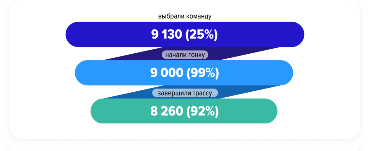 Больше всего заездов в игре участники совершили за команду сервиса и продаж — эту ветку прошли 9600 человек.
