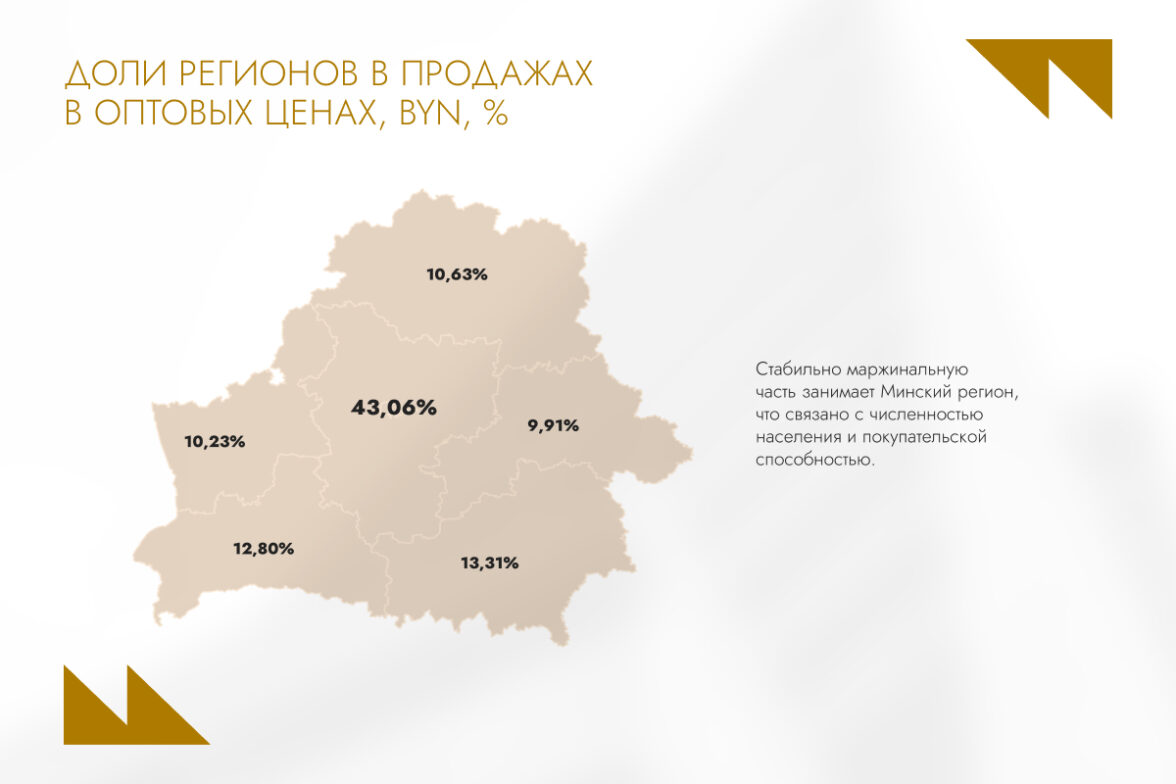 По региональной структуре продаж лидирует Минский регион — это объясняется высокой численностью населения и его покупательской способностью. Среди ключевых игроков рынка выделяются: СООО «Лекфарм», ОАО «Борисовский ЗМП», РУП «Белмедпрепараты», KRKA, GmbH Sandoz.