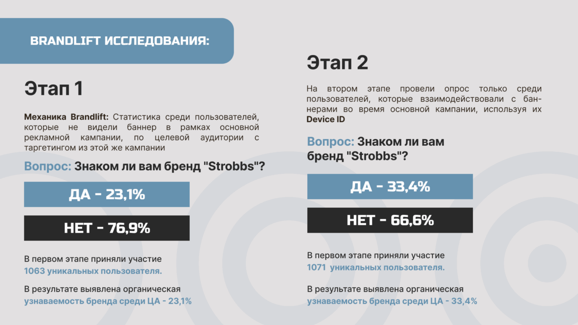 Эффективность in-app рекламы подтверждается Brand Lift исследованиями. Например, рекламная кампания через платформу BYYD привела к 44,4%-ному росту лояльности к бренду Strobbs.