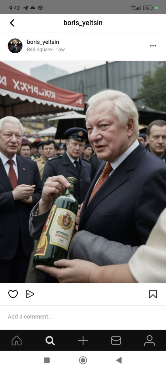 Почти сразу выяснилось, что английский язык — не помеха для российских бабочководов. В ленте мне встретилась, например, «тургеневская Ася», страдающая в Российской Империи от засилья патриархата, но очень стильно, не побоюсь этого слова, инстаграммно страдающая. Борис Николаевич Ельцин с 390 подписчиками. Русская тян на Красной площади. Там же, на Красной площади — Russian vodka king.