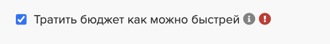 *РК- рекламная кампания**Будьте внимательны: опция отключает равномерность расходования бюджета кампании и может привести к превышению бюджета.