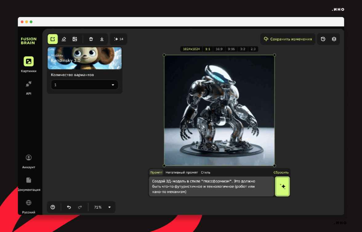 Пример генерации изображения с помощью нейросети Kandinsky 3.0