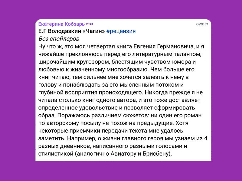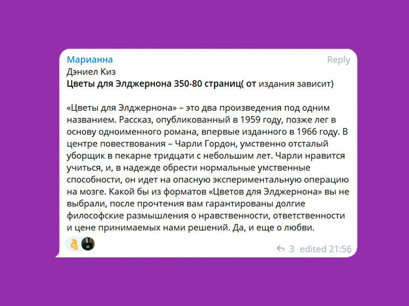 Есть точный тайминг, к которому нужно прочитать книгу. При таких условиях лучше получается организовать свое время. Иногда приходится вечером перед встречей успевать читать половину книги, но чувство удовлетворенности от завершенного дела и возможности обсудить с единомышленниками произведение растворяет в воспоминаниях любые трудности. А пережитые вместе с коллегами эмоции сближают и помогают лучше понять мировоззрение друг друга.