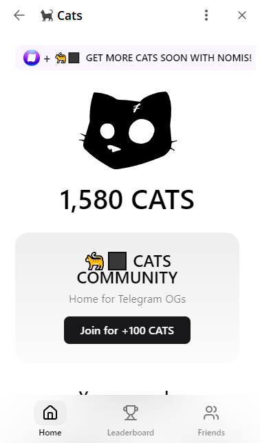 За приглашенных друзей в CatsGang вы будете получать $CATS, чем больше у вас $CATS, тем выше ваша позиция в таблице лидеров. На сегодняшний день всего три способа получить $CATS: