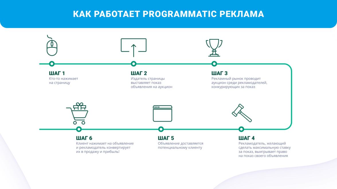 Что такое programmatic media buying? Это — покупка рекламных мест на различных каналах связи. Платформы автоматически находят нужных пользователей и показывают им рекламу.