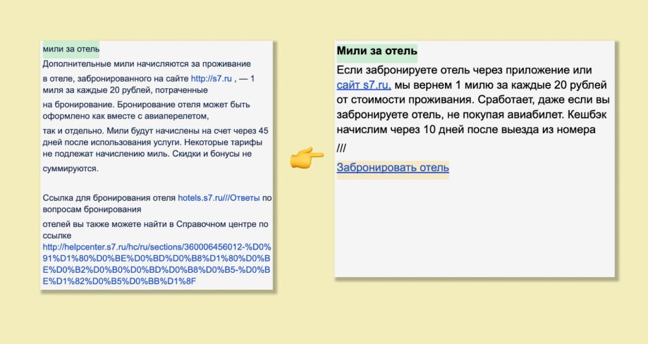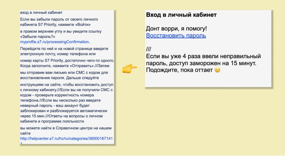 Мы не просто переписали 850 текстовых ответов, а сделали их человечными и полезными. Уверены, что путешественники S7 Airlines теперь будут получать самую точную, персональную и заботливую консультацию от Элли, а нагрузка на операторов Контактного Центра станет меньше. Если вы хотите также — пишите, мы поможем!