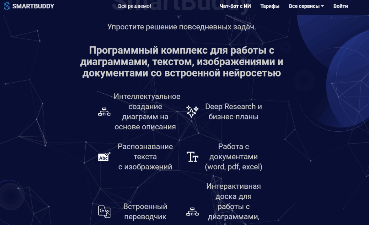 Искусственный интеллект, который превращает текстовые описания в сочинения, презентации, резюме, исследовательские работы, профессиональные диаграммы Ганта, блок-схемы процессов и интерактивные графики без PowerPoint или специализированных программ для построения схем. Платформа работает через интерактивную доску, где можно редактировать сгенерированные данные, экспортировать результат в презентации PowerPoint и таблицы Excel, выделять ключевые мысли из больших текстов и переводить контент на десятки языков без использования сторонних сервисов. Токены не сгорают и хранятся на счету неограниченное время, для пользователей предусмотрен бонус после регистрации (от 150 до 5000 рублей в зависимости от стартового пополнения) и 3 бесплатных запроса для тестирования.