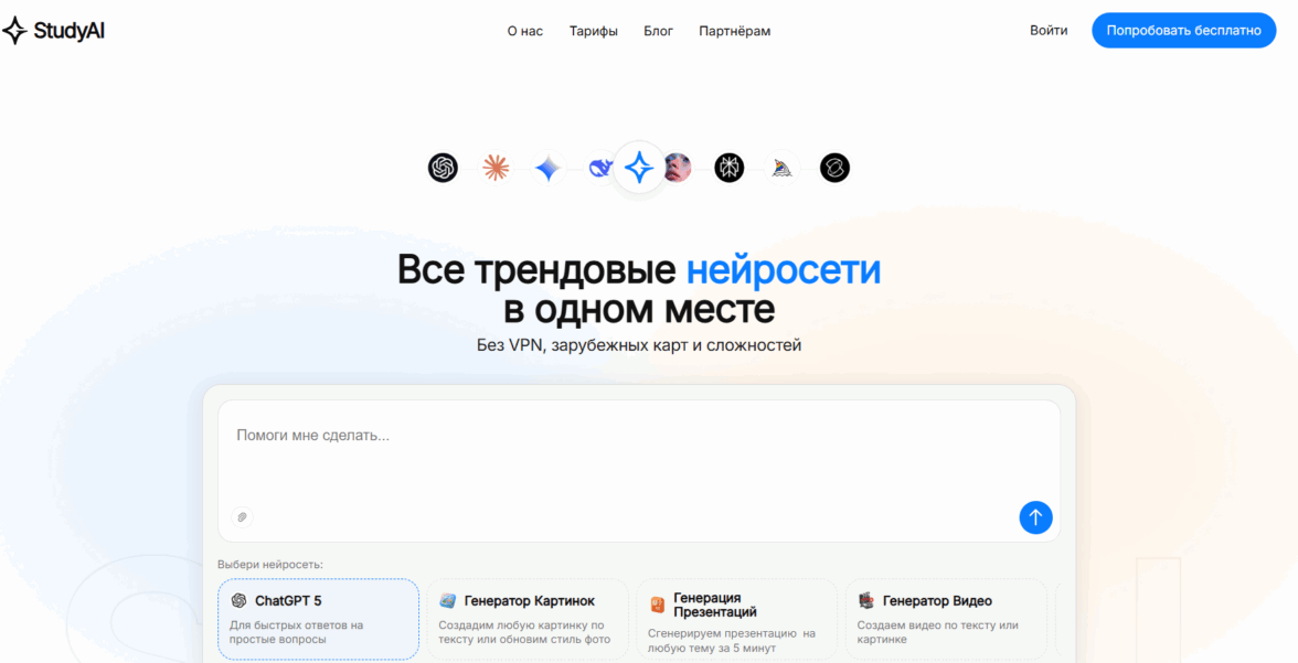 Study AI — универсальный российский агрегатор 35+ нейросетей с автоматическим подбором оптимальной модели под задачу