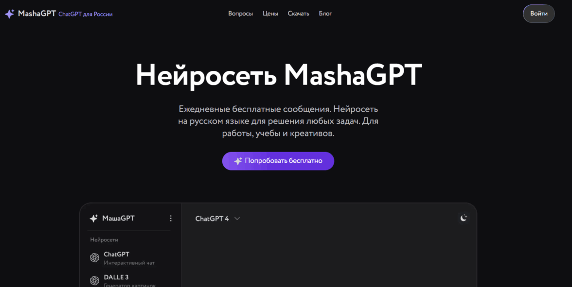 MashaGPT — AI-ассистент на базе OpenAI с полностью русскоязычным интерфейсом