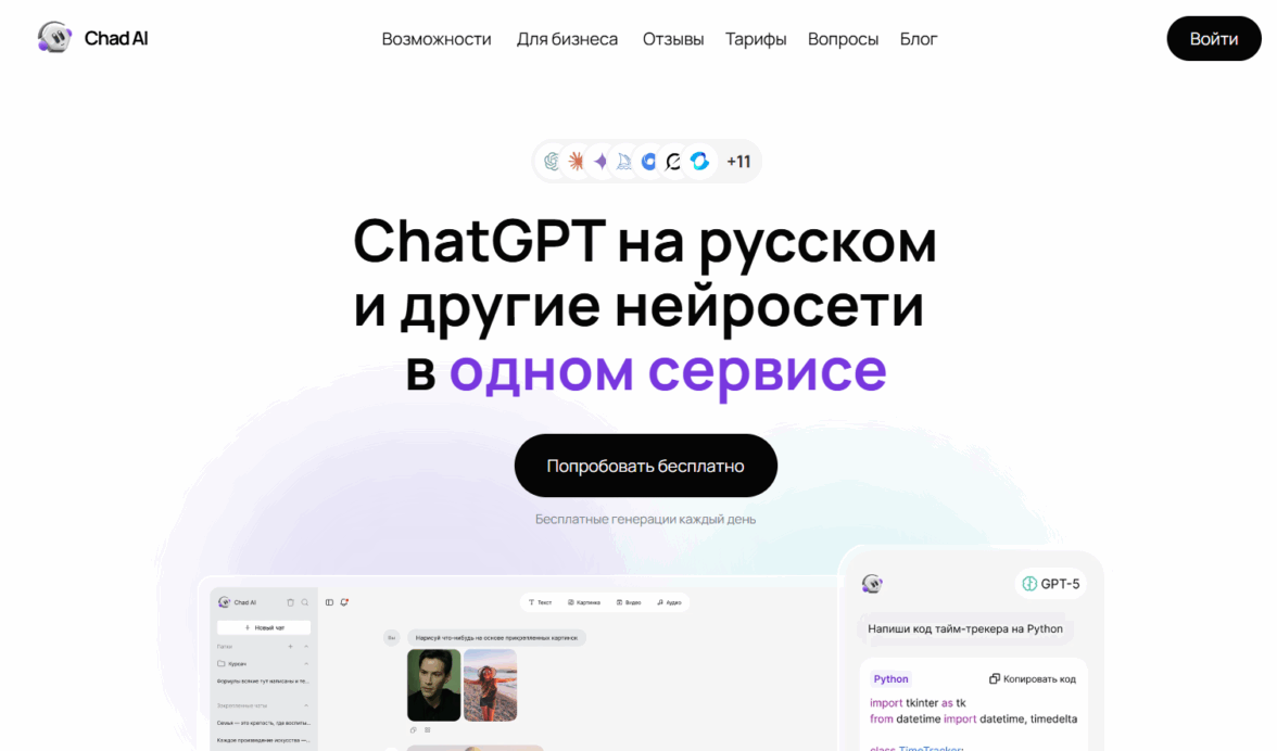 Chad AI — доступ к самым свежим моделям ИИ (ChatGPT-5, Claude 4, Midjourney v7)