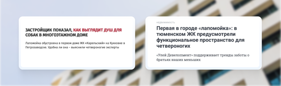 Без анализа аудитории, не получится создать сильного УТП, а без сильного УТП — отстроиться от конкурентов. Застройщиков, которые не занимаются исследованием, видно издалека: в качестве офферов они выбирают размытые формулировки вроде «новый уровень жизни» или «забота о родных» и сомнительные характеристики, которые давно являются базовыми. Пример, ставший мемом, — лапомойки для собак. Хорошо, если она есть, но если ее наличие продается как уникальное предложение, то ценность такого предложения сомнительна.
