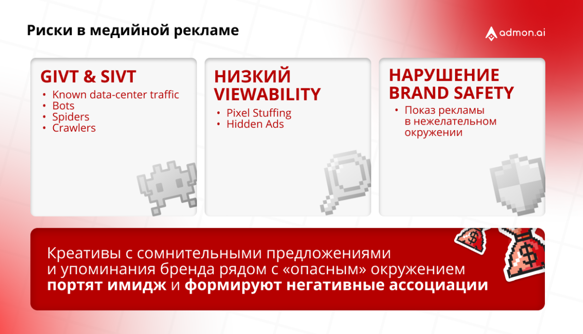 Если с первым нарушением в медийке все понятно, то безопасности рекламного окружения не всегда уделяют должное внимание. При размещении на запрещенных, серых или непроверенных площадках, партнеры могут привести рекламодателю целевой трафик, но вместе с тем нанести серьезный ущерб репутации бренда. «Это тот магазин, который на порно сайтах рекламится?».