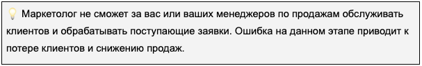 Маркетолог на основе данных из бриф-анкеты и самостоятельно проведенного анализа создал эффективную рекламную кампанию. Она приводит квалифицированных лидов и заявки. Но продажи как были низкие, так и остаются на том же уровне. В чем проблема?