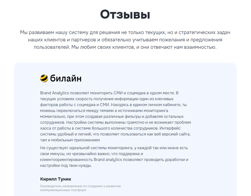 Раздел отзывов клиентов на сайте