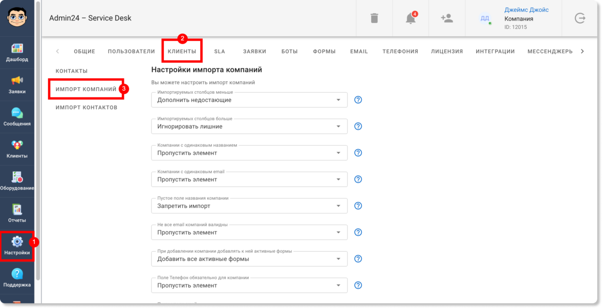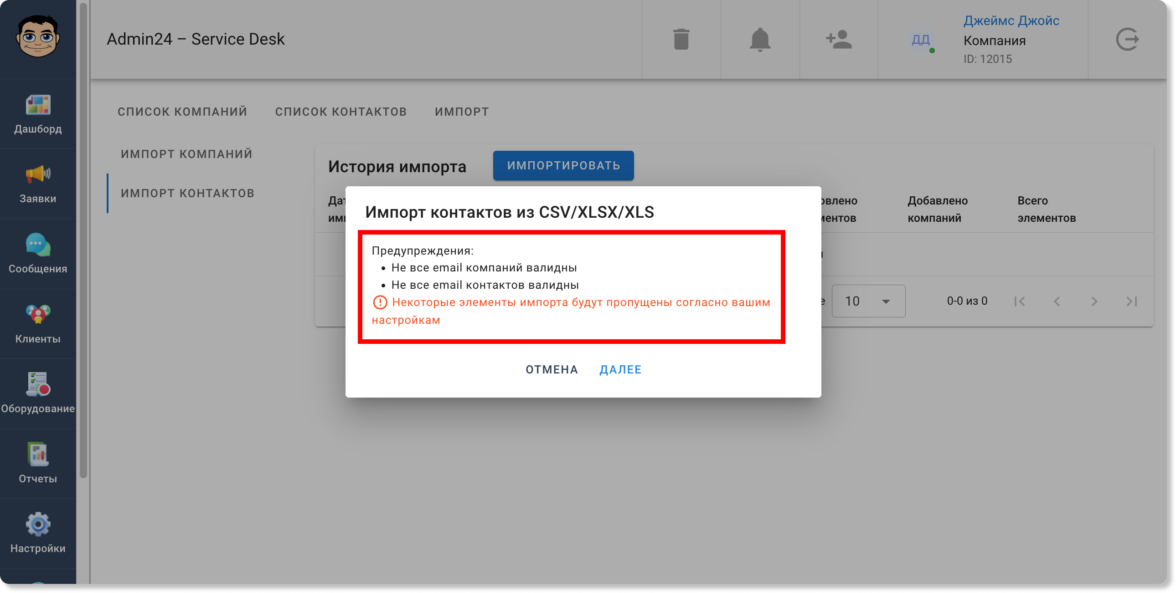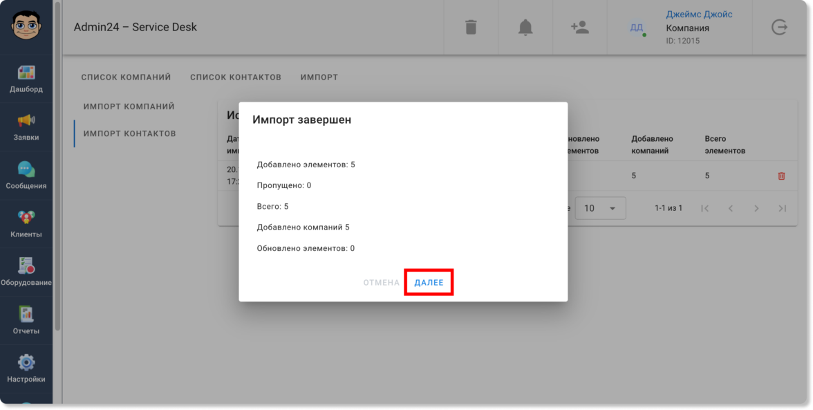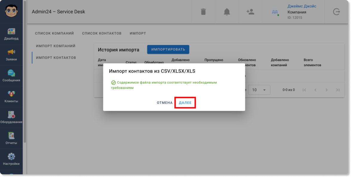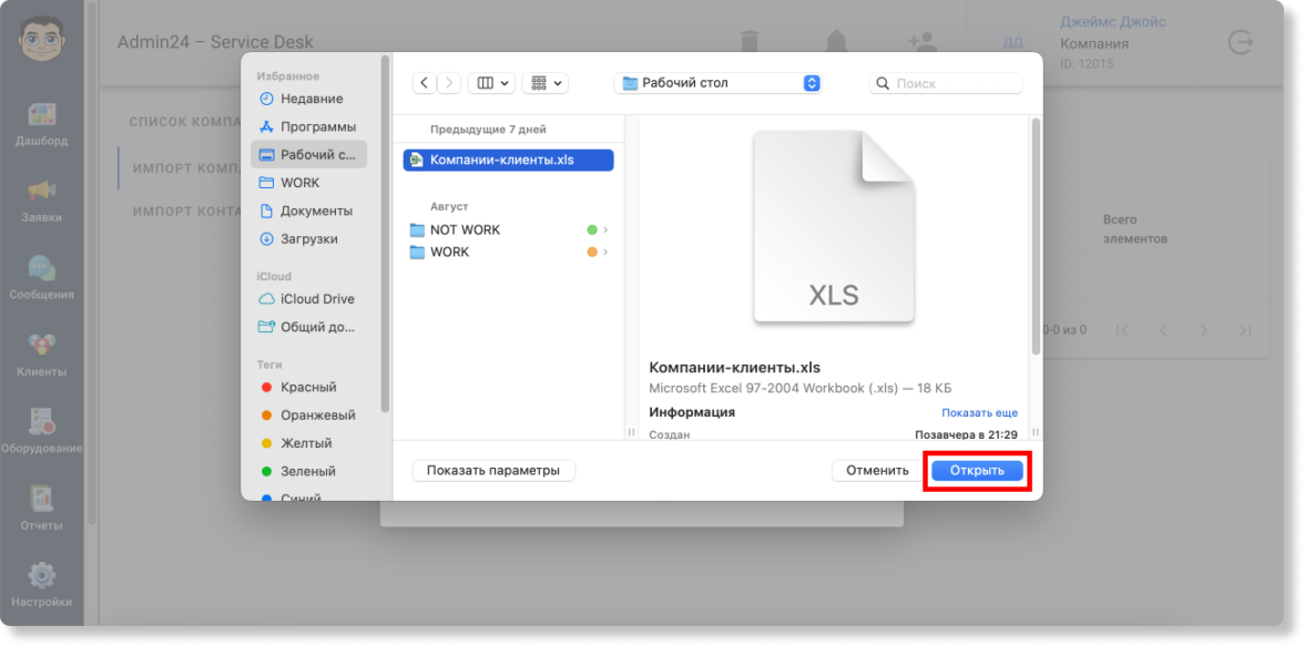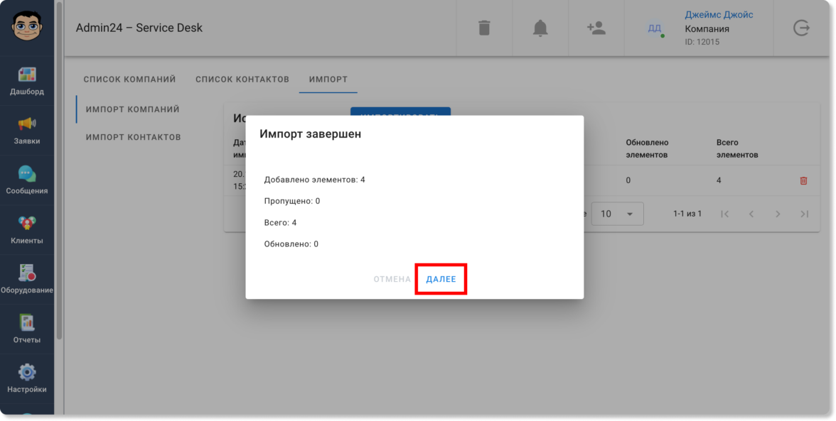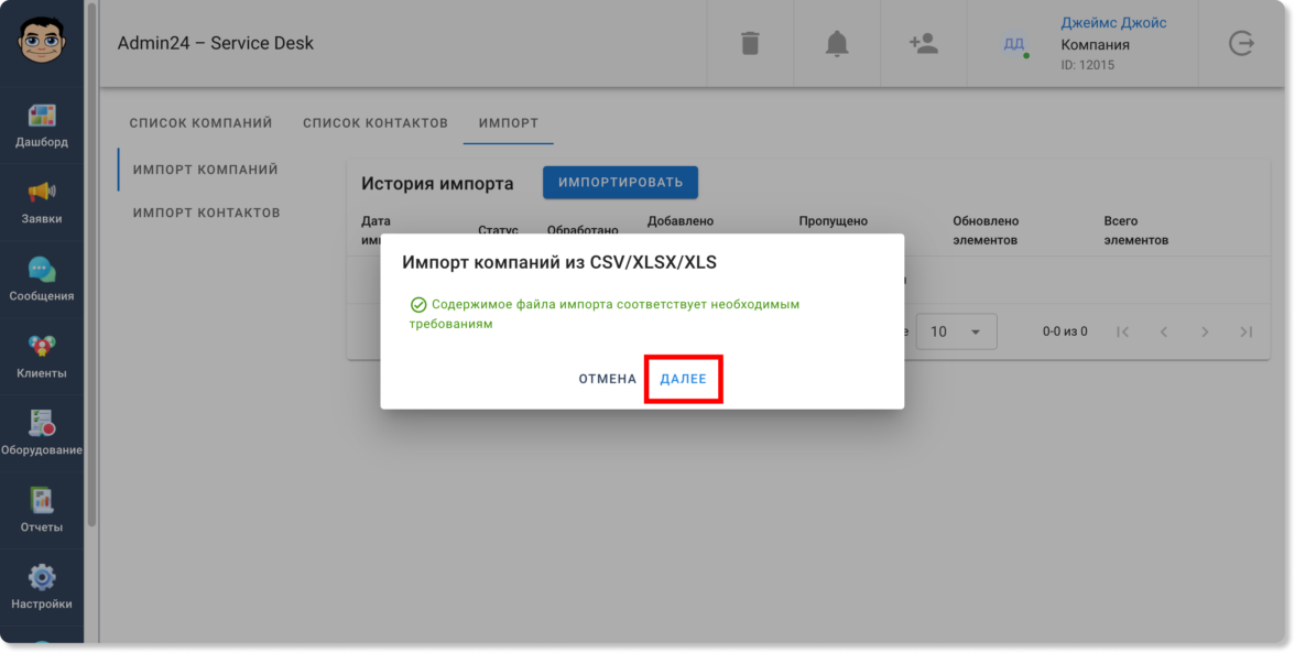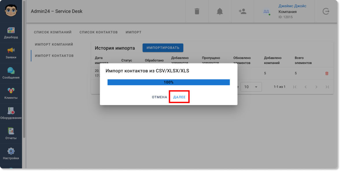 В Admin24 появилась возможность импортировать компании из файлов CSV, XLS и XLSX.