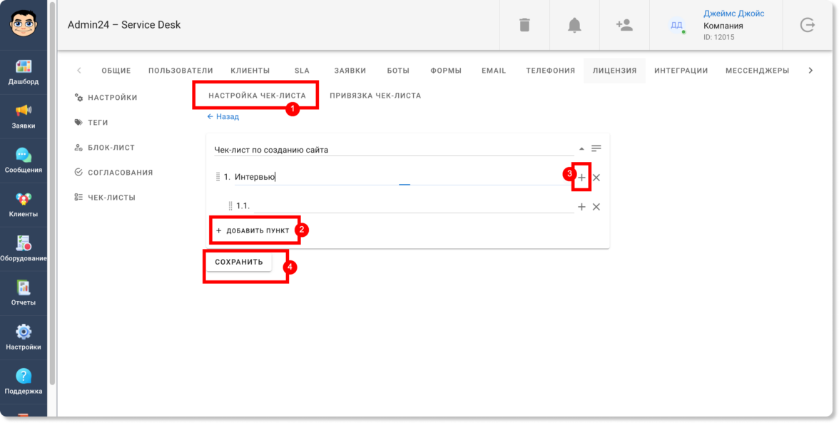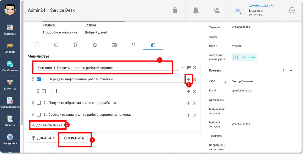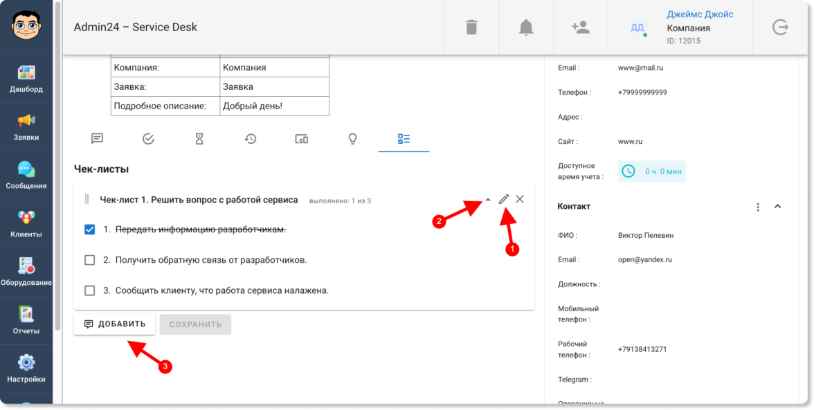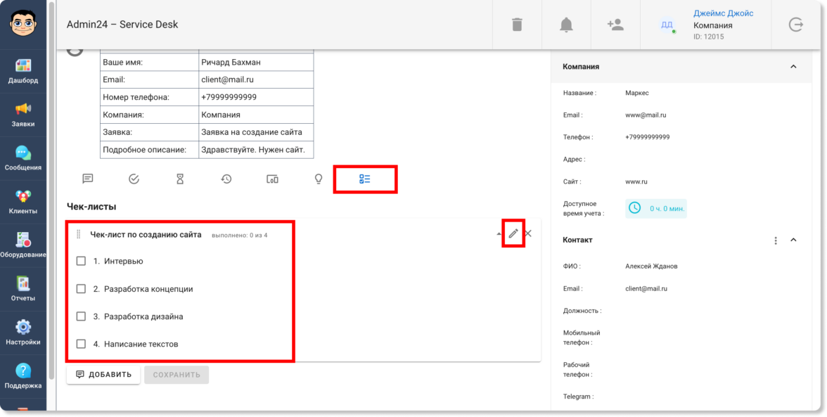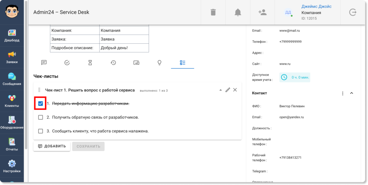 Внутри заявок в Admin24 появился функционал чек-листов. Он позволит не забывать о каких-либо задачах в рамках работы с обращениями.