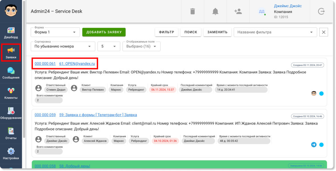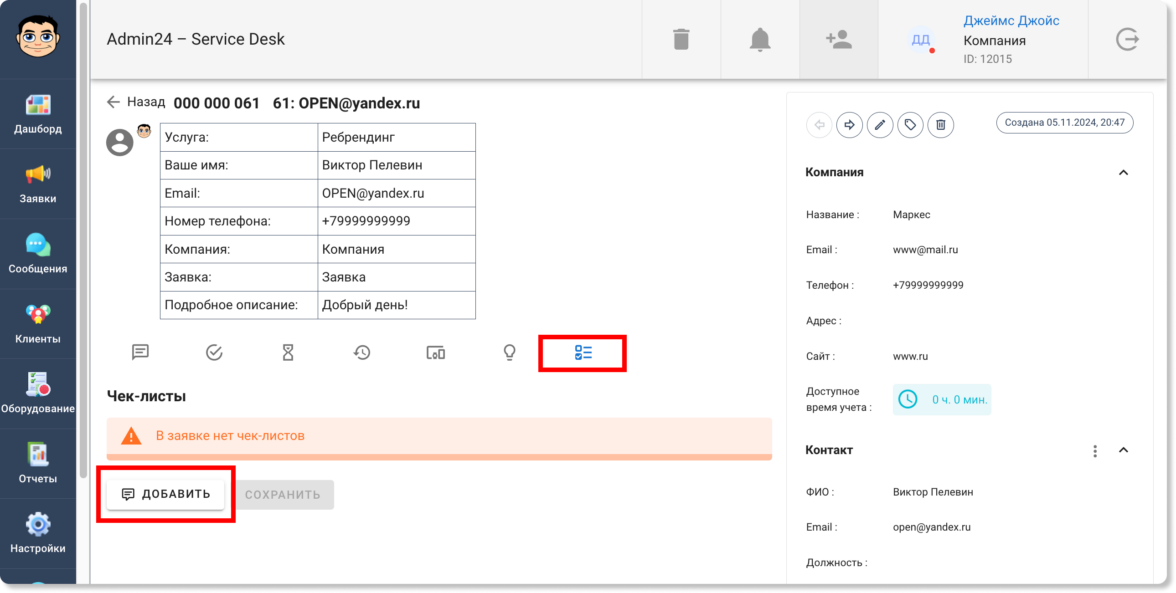 Чтобы создать чек-лист, перейдите в раздел «Заявки», кликните на нужное обращение.