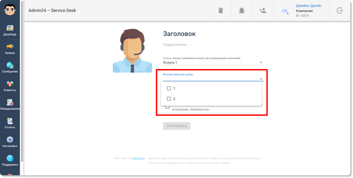 В конструкторе форм появился новый тип поля — «Множественный выбор». Он позволяет добавить в форму список с возможностью выбора нескольких значений одновременно. Работает при подаче обращения как через форму, так и через чат-ботов или API.