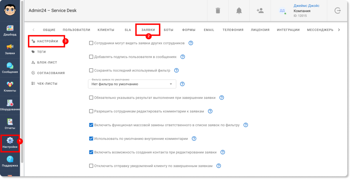 Чтобы это сделать, перейдите в «Настройки» → «Заявки», откройте вкладку «Настройки».