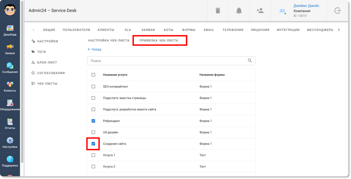 В Admin24 можно автоматизировать создание чек-листов: чтобы они сразу появлялись внутри новых заявок в зависимости от формы, услуги или подуслуги.