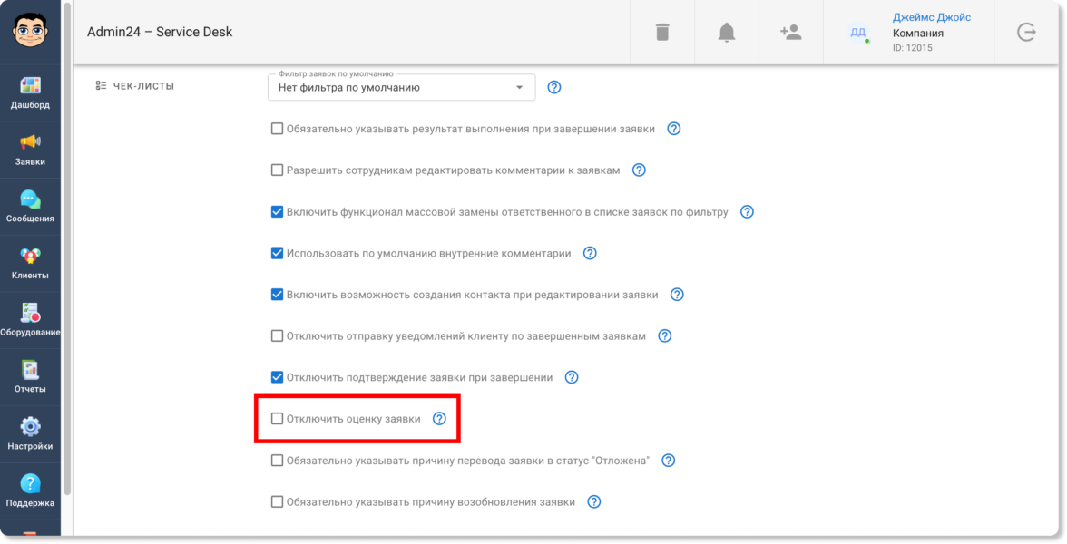 По умолчанию клиенты, отправляющие заявку, после ее завершения могут ставить оценку качеству обслуживания. Этот функционал теперь можно отключить.