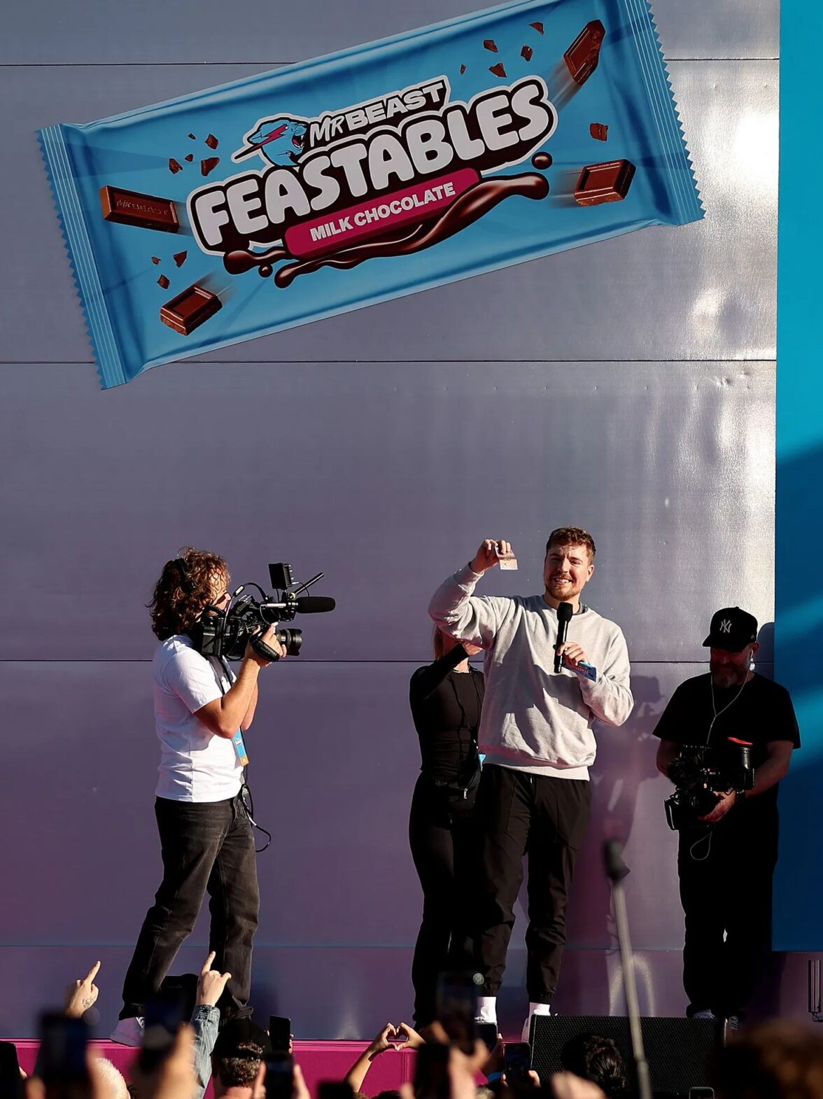 MrBeast во время розыгрыша Lamborghini на презентации Feastables в Сиднее в июне 2024 года
