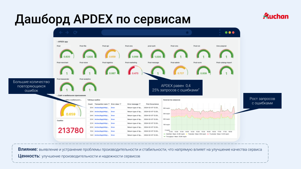 24 октября мы провели митап «GMonit для развития ритейла: АШАН заменил New Relic на российский аналог», в ходе которого рассказали, как observability платформа позволяет обеспечить сквозной мониторинг, комплексно оценить влияние ИТ на e-com благодаря кастомизированным дашбордам с понятными бизнес-метриками и определить векторы для оптимизации работы сервисов.