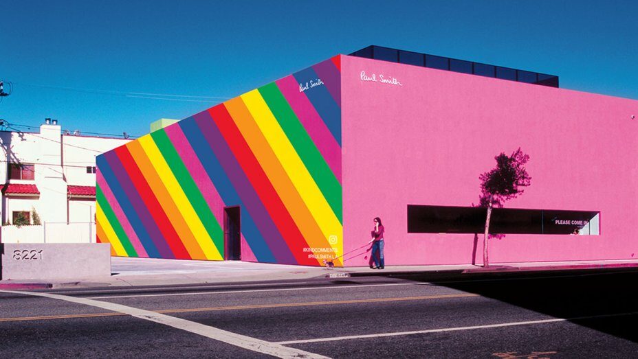 Примером грамотного использования неолокализма может служить бренд Paul Smith. Несмотря на то, что это международная сеть, каждый магазин уникален. В Лос-Анджелесе фасад оформлен в ярко-розовых тонах, в Лондоне — это сочетание кирпича и чёрных металлических панелей, а в Токио магазин украшен алюминиевой отделкой, вдохновленной известным архитектором Пьером Шаро.