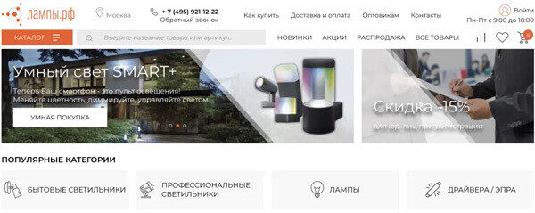 На текущий момент сайт запущен, работает в тестовом режиме — lamps.ru.