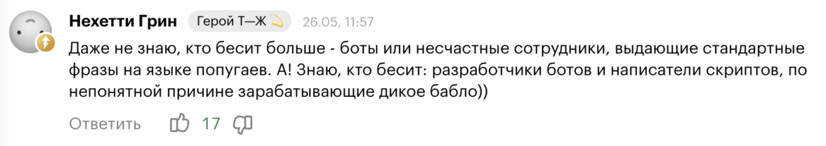Под раздачу и гнев пользователей в итоге попадают все: и боты, и их разработчики, и сотрудник службы поддержки.