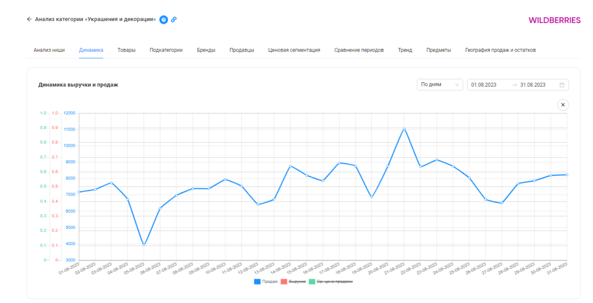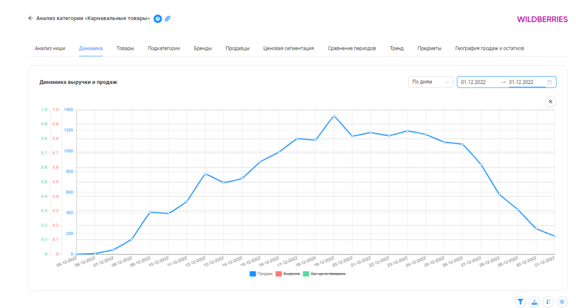 «Динамика выручки» позволяет увидеть, как развивается ниша по времени ближе к Новому году.