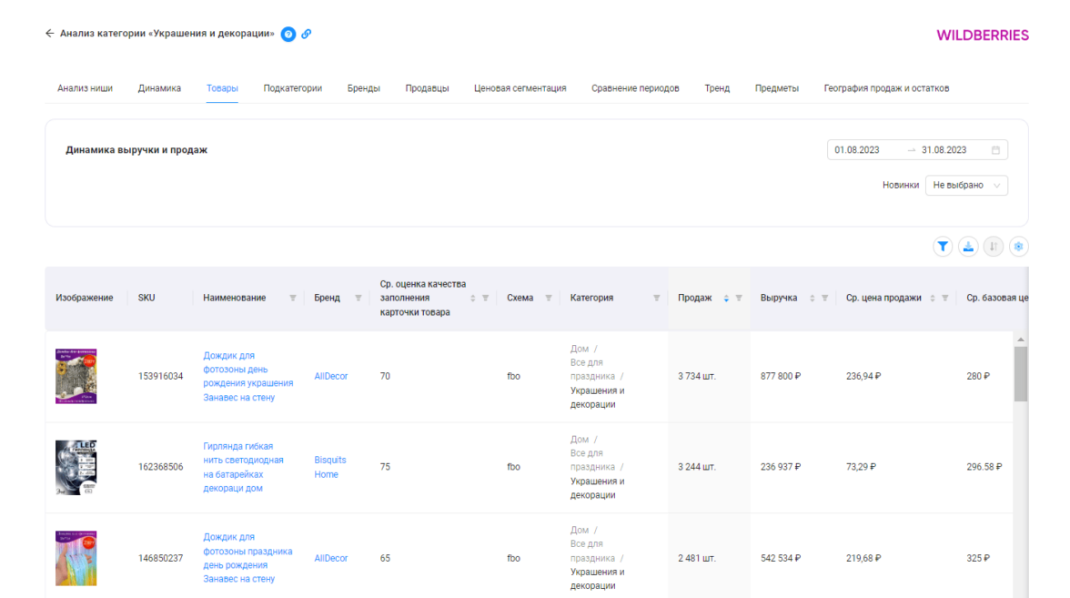 Чтобы спрогнозировать спрос, заглянем в прошлое и проанализируем, что активно приобретали на Wildberries в категории «Все для праздника» в последние месяцы 2022 года.