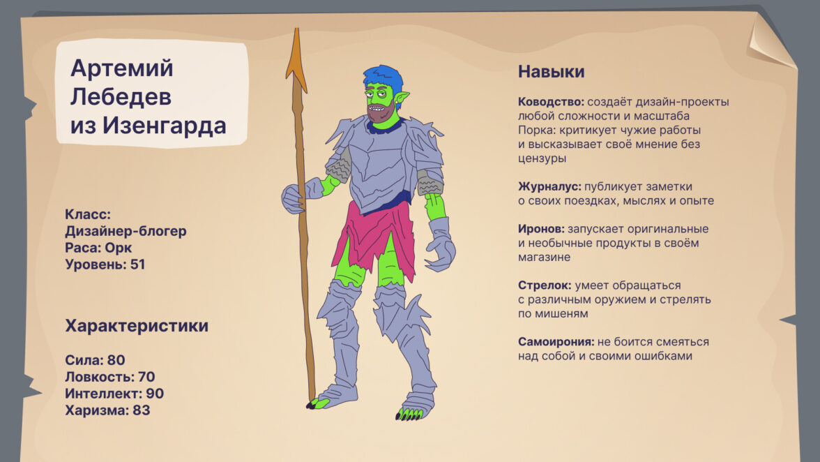 Лебедев родился в знатной семье и с ранних лет был обречён на успешную карьеру в Изенгарде. Став дизайнером, он разработал отличный план города, после чего орки и назгулы наконец перестали путаться в переулках крепости и в тёмных коридорах Мордора.