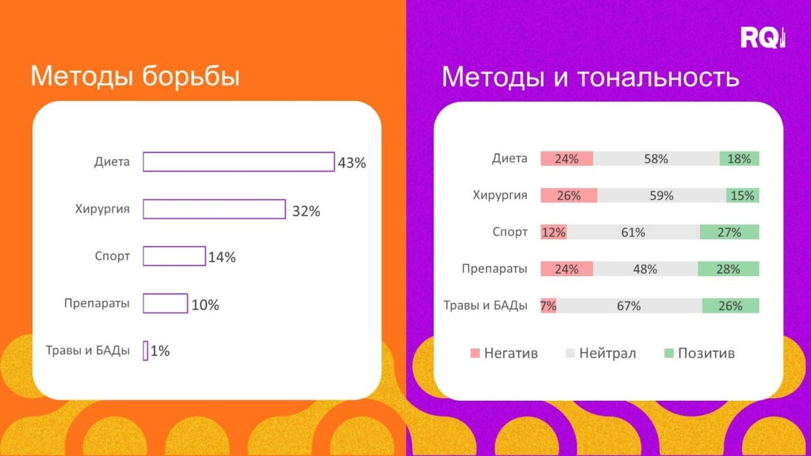 Команда экспертов партнёра Brand Analytics — RQ Index — проанализировала более миллиона обсуждений в соцсетях, чтобы выяснить, как россияне относятся к проблеме избыточного веса и какие методы борьбы с ней выбирают.