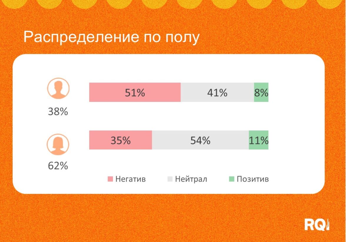 Тональность общей выборки сообщений неоднозначная. Позитивных сообщений лишь 8%, в то время как негативных — 43%. Критический тон преобладает над поддержкой более чем в пять раз. Такая атмосфера формирует дополнительную психологическую нагрузку для людей, столкнувшихся с проблемой.
