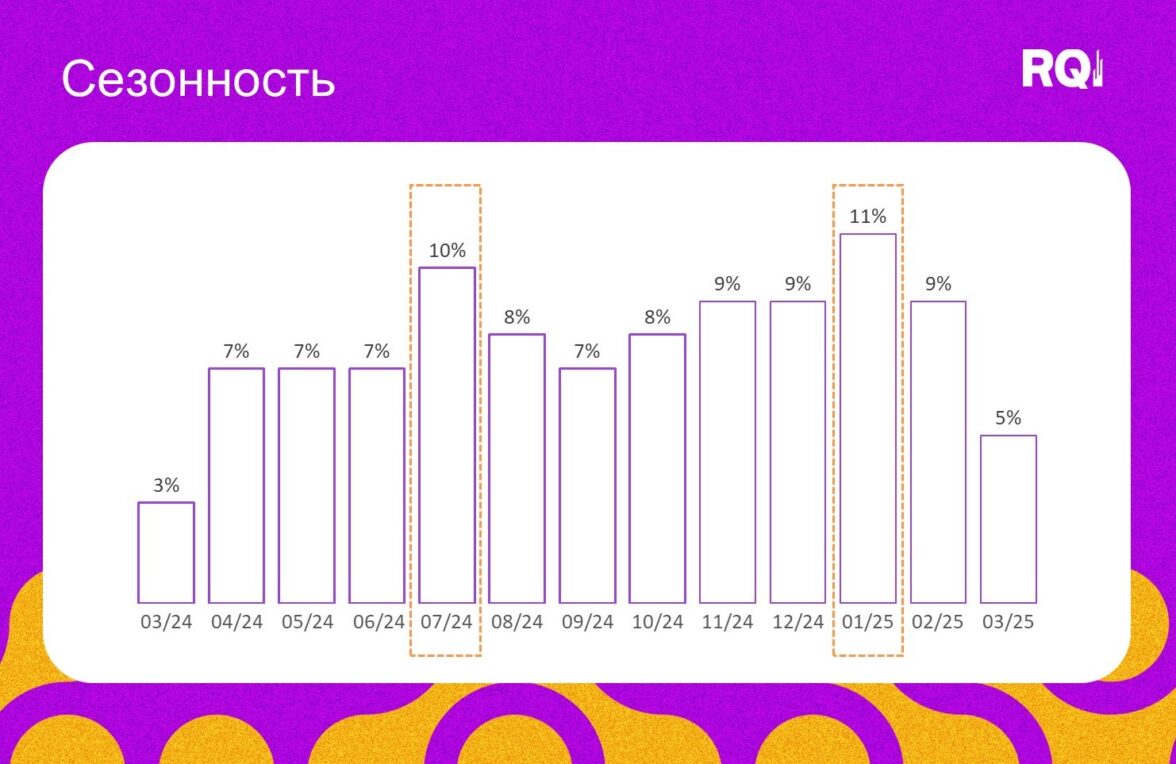 Наибольший всплеск интереса к проблеме зафиксирован в июле 2024 и январе 2025. Минимальные колебания активности в течение года подчеркивают значимость темы для общества.