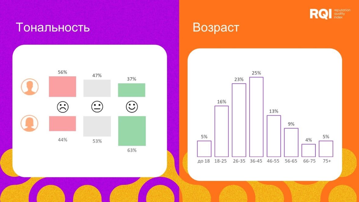 Мужчины чаще выступают агрессорами (53% сообщений с буллингом) и чаще выражают негатив (56%). Женщины в этой непростой теме по большей части стараются поддержать (63% их релевантных сообщений позитивны). Самый высокий уровень буллинга зафиксирован среди авторов 26–45 лет (48%), но он также значителен среди молодежи 18–25 лет (16%).
